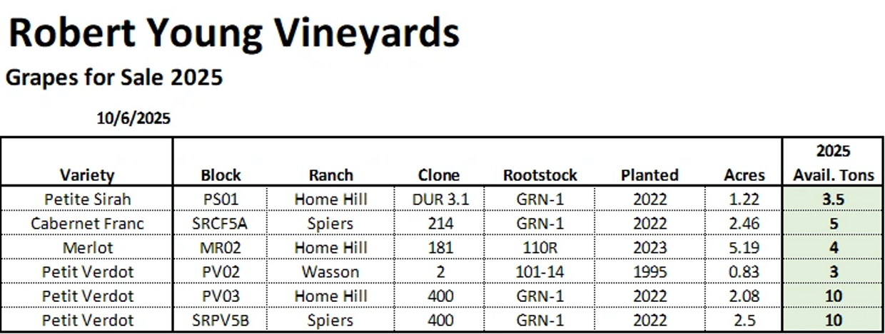 Experience the rich and diverse flavors of the Robert Young Vineyards, nestled in the heart of Alexander Valley.